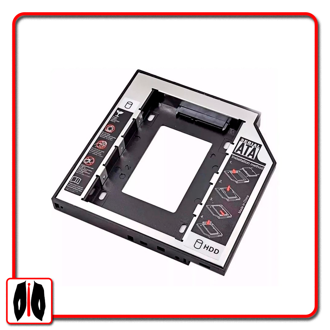 Con este innovador producto usted puede colocar otro disco en su notebook en lugar de la lectora. Puede colocar cualquier disco de 2,5″ con conexión SATA ya sea mecánico o ssd. ¿Como saber si es compatible con Tu modelo de notebook? Medir el espesor/altura de la lectora para ver si tiene 9,5 mm.