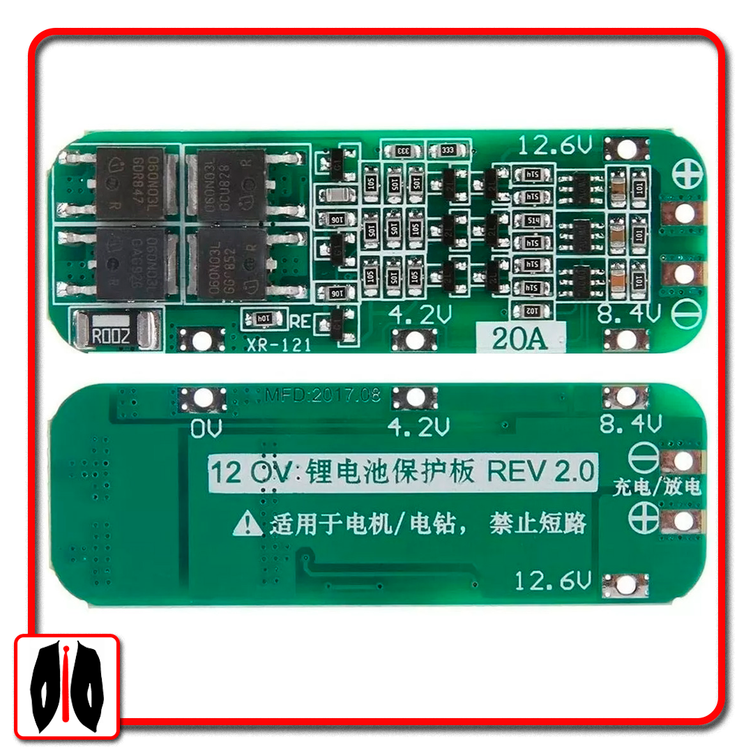 En el momento de estar alimentando un dispositivo permite que circule tensión de la batería a la carga hasta que disminuya a valores mínimos en ese momento el modulo impide que se descargue por más tiempo y la alimentación de salida hacia la carga quede cortada. En el momento de cargar la batería cuando ha alcanzado la tensión suficiente de 4.2V el circuito corta la entrada de corriente permitiendo la descarga, pero no la carga, es decir, establece un interesante equilibrio sobre cuando se admite carga y cuando se admite descarga a la batería. Este módulo cuenta con protección de sobrecarga, protección de sobre corriente y protección contra cortocircuitos. — Tipo de baterías: Litio o Lipo (polímero de Litio) – Voltaje de sobrecarga: 4.25 a 4.35 VDC ±0.05 V por celda – Sobre voltaje de descarga: 2.3 a 3.0 – VDC ±0.05 V por celda – Corriente continua máxima: 15 A – Corriente máxima: 20 A – Temperatura de trabajo: -40º C a 50º C – Ciclo de vida: 50000 horas – Dimensiones: 58x20x2 mm